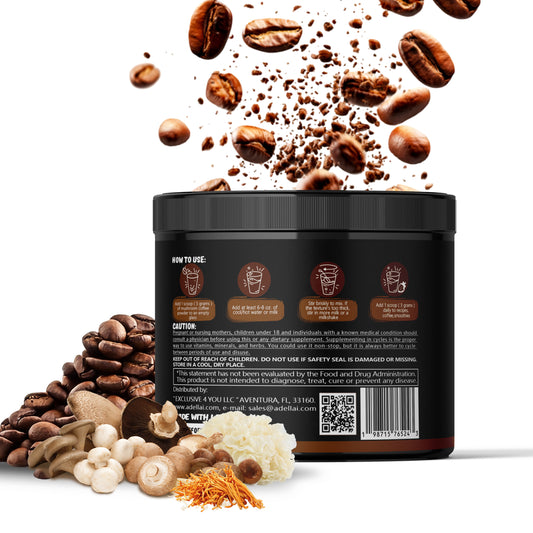 Adellai Organic Mushroom Coffee Blend Powder – 10 Mushroom Lion’s Mane, Cordyceps, Chaga, Shiitake, Agaricus Blazei, MCT Oil, Collagen & Ashwagandha, KETO, L-Theanine for Energy, Brain & Immune Support 180G Beverage Taffy Collagen